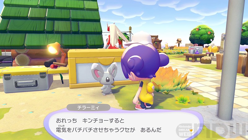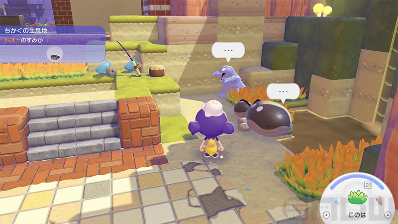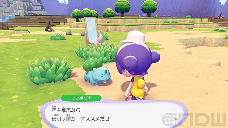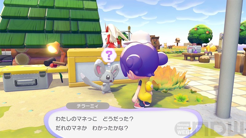 街を歩くと、ポケモンたちにふきだしマークが。話しかけると、ほかのポケモンの話し方をマネするクイズを出してくれます。