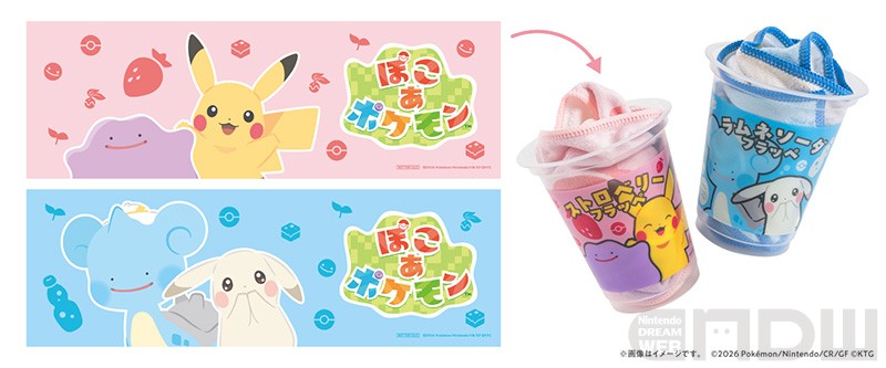 スタンプ5個:フラッペカップ入りのバックプリントタオル2種セット(メタモン・ピカチュウ、メタモン(ラプラスへんしん)・ピカチュウ(うすいろデザイン)抽選20名