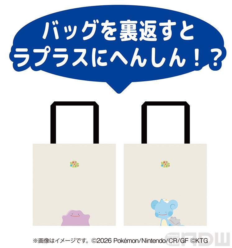 スタンプ5個:メタモン&メタモン(ラプラスへんしん)デザインのリバーシブルトートバッグ 抽選20名
