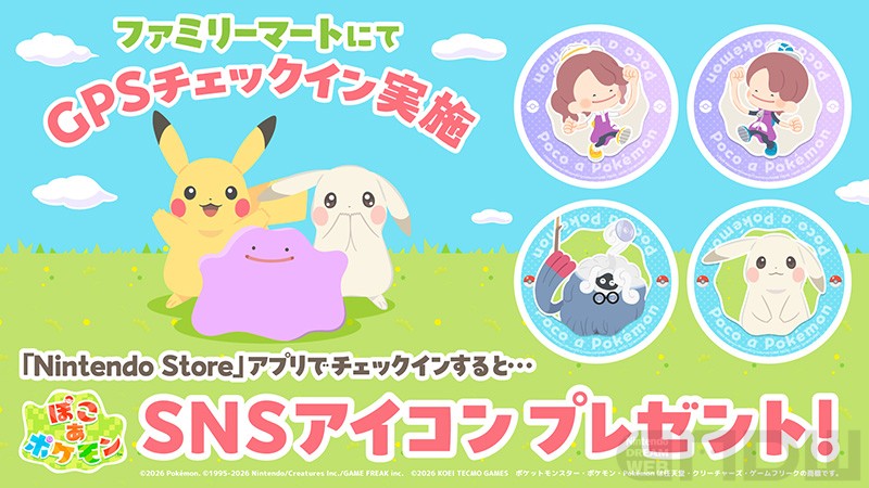 キャンペーン期間中、ファミリーマート店頭でスマートフォン向けアプリ「Nintendo Store」の「GPSチェックイン」を行うと、オリジナルデザインの『ぽこ あ ポケモン』アイコンがもらえます。