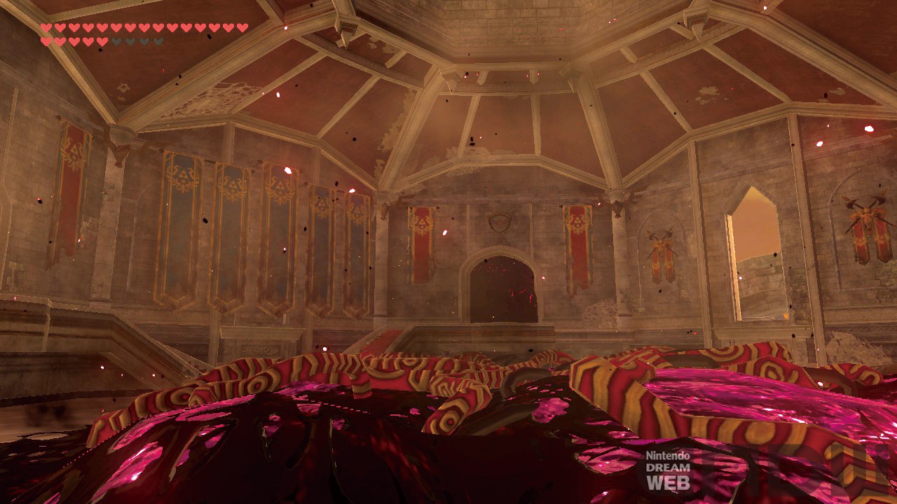 謁見の間。祭事などが執り行われる、城で最も重要な場所。現在は厄災ガノンが繭のような姿で陣取っている