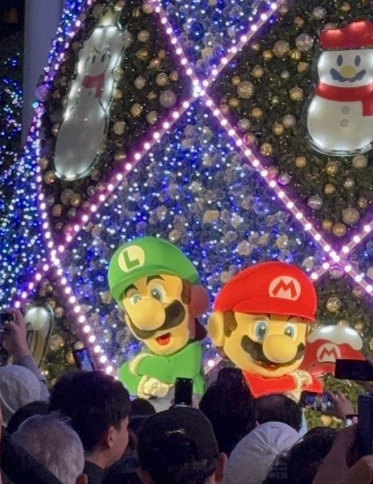 大勢が見守る点灯式に、マリオとルイージが駆けつけた!