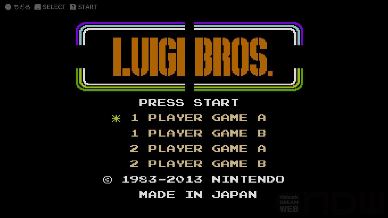 『ルイージブラザーズ』は1983年にファミコンで発売されたソフト『マリオブラザーズ』をアレンジしたゲーム。その名の通りプレイヤーキャラクターはルイージで、昔と今のカラーが登場します。