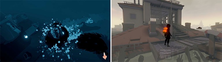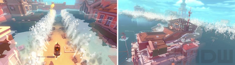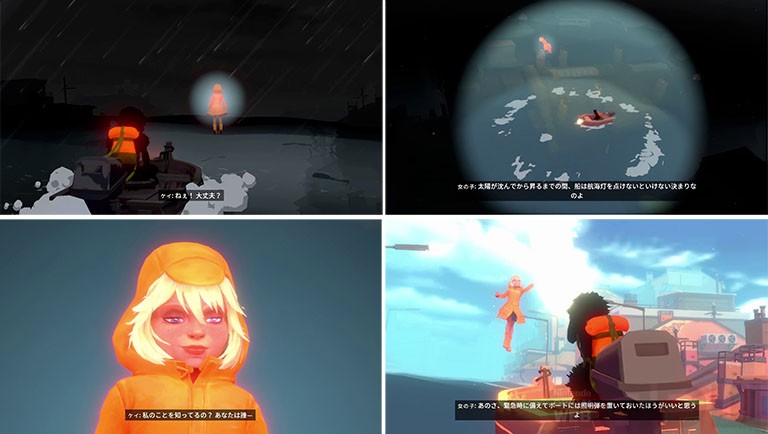 「ケイ」の行動によって、水没都市の水位は絶えず変化していきます。水や光、天候の表現や、一気に水位が下がって出現する都市を移動するときの音響もこのゲームの特徴の一つです。