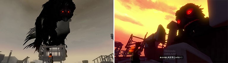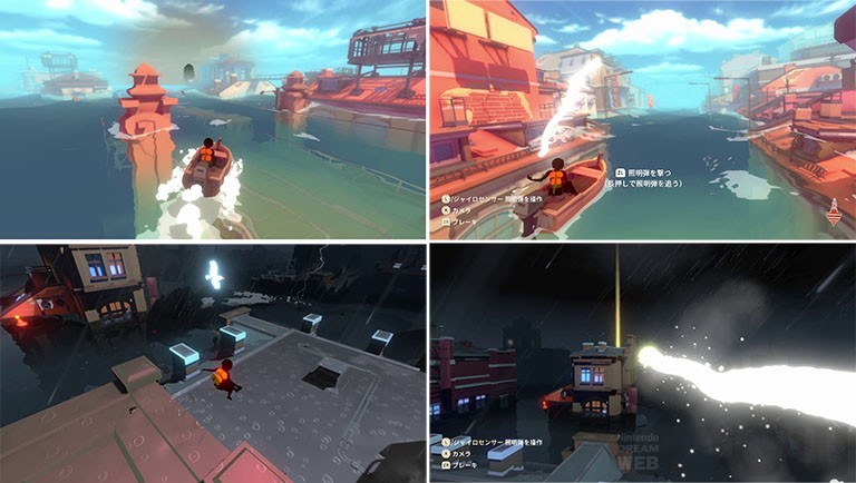 ケイの行く先を教えてくれるのは謎の少女からもらった照明弾。照明弾は建物などにぶつかると途中できえてしまうので、Lスティックかジャイロセンサーで照明弾の軌道を制御してかわすことも重要。