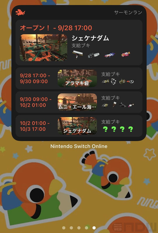 サーモンランやナワバリバトルのスケジュールは、スマートフォンアプリ「Nintendo Switch Online」のアプリ内にある「イカリング3」にて確認できます。
