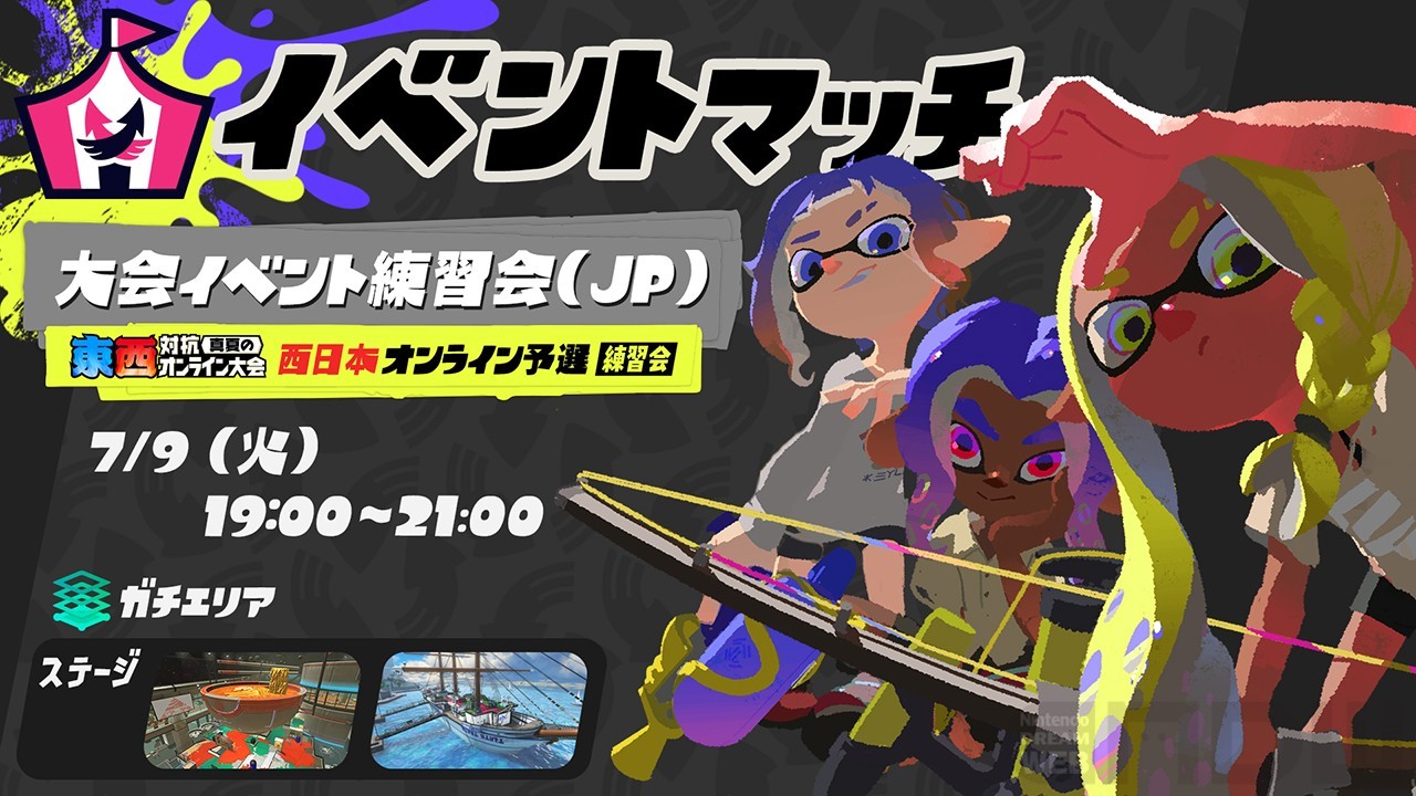 『スプラトゥーン3』を含む3タイトルによる「東西対抗 真夏のオンライン大会」は、先日東日本代表決定戦を終えました。そして、西日本代表決定戦に進む8チームを決めるためのオンライン予選が、7月20日(土)19時からイベントマッチで開催されます!