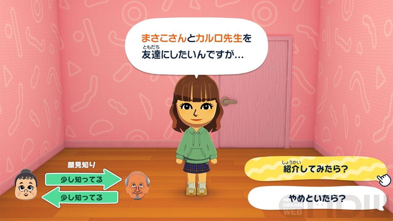 まずは、島に住まわせたいMiiを作るところからスタート。自分や友達、家族や好きな人など、いっしょに暮らしたいMiiを作って住まわせよう。