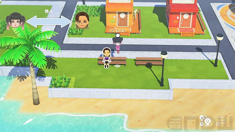 住人として島に住むことになったMiiは、それぞれが自由気ままに生活を送りはじめます。島の管理人として、ときにはMiiたちのお願いを叶えたり、住人を直接つまんで別の住人のところへ持って行ったりと生活に介入したりして、住人たちと触れあうことができます。