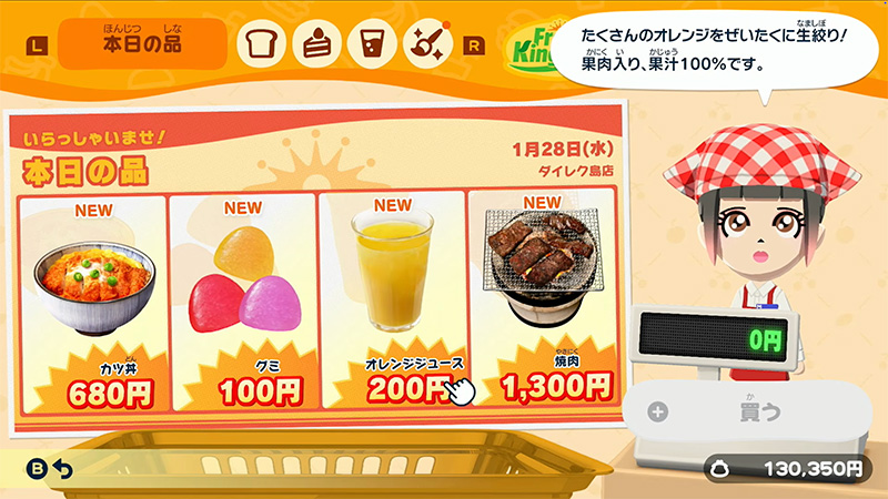 住人にあげられる食べ物を売っているお店です。日替わり商品のほか、ちょっと変わった商品が並ぶことも。食べさせると、大好物の一品が見つかるかも?