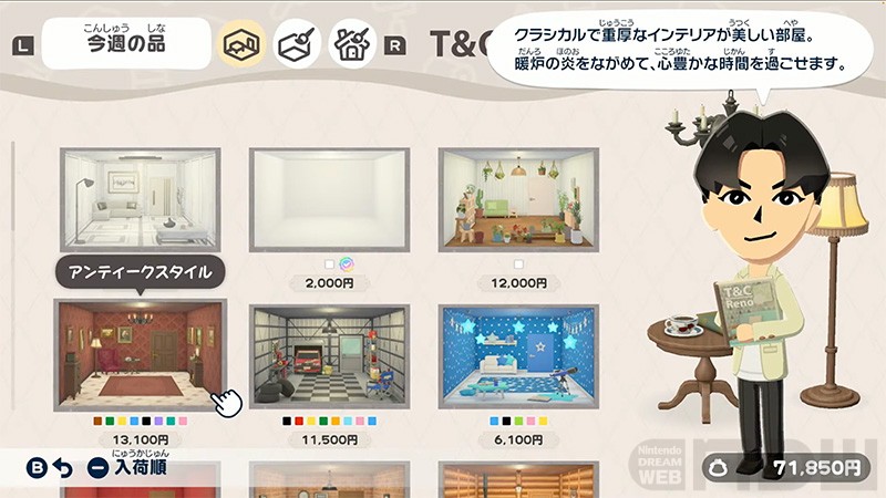 部屋の模様替えができます。海中の部屋やスーパーマーケットなど、理想のお部屋づくりを目指してみてくださいね。