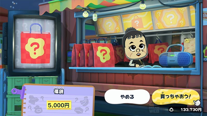 施設のひとつアイテム工房では、食べ物や服、オブジェなどのアイテムやペット、建物までオリジナルアイテムが作れるようになります。また、ローカル通信を使えばプレイヤーが作ったMiiやアイテムを友達と共有することも可能です。
