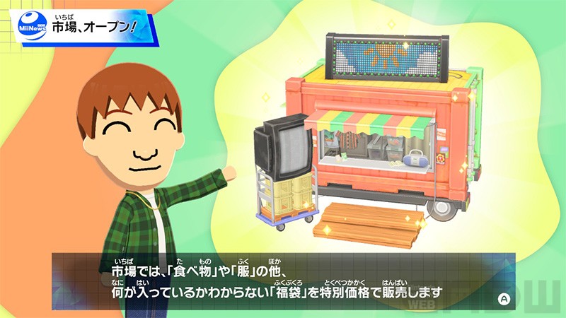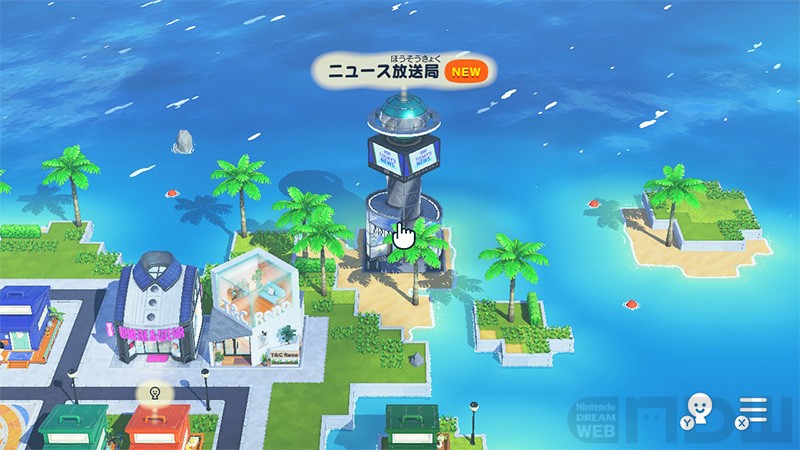 NDW島に「ニュース放送局」が新設! ここでは一風変わったMiiたちのニュースを教えてくれたり、ふだんのお知らせの振り返りをすることができます。