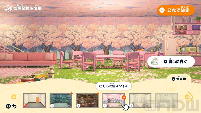 新しい家は、リビングが本当に広い〜! ちょうど春のアイテムが入荷されたので、リビングを「さくら吹雪スタイル」にチェンジ。雰囲気最高のインテリアで、同棲生活スタートです。