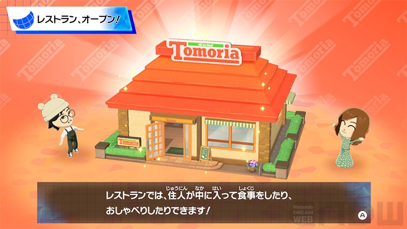 さらに、島に「レストラン」ができました。Miiたちが4人集まって雑談したり、ドリンクバーに立っていたりと、本当に“日常”を覗いているような気持ちになってきます。いいなあ、私も混ざりた〜い!
