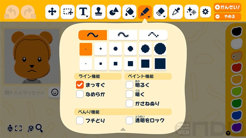 耳の部分は、顔と同じ色のツインお団子スタイルにして表現しています。顔の一部はフェイスペイントで描いているのですが、ライン機能を「なめらか」に設定すると、タッチスクリーンでの手描きの線が綺麗なアーチになってくれて便利でした!