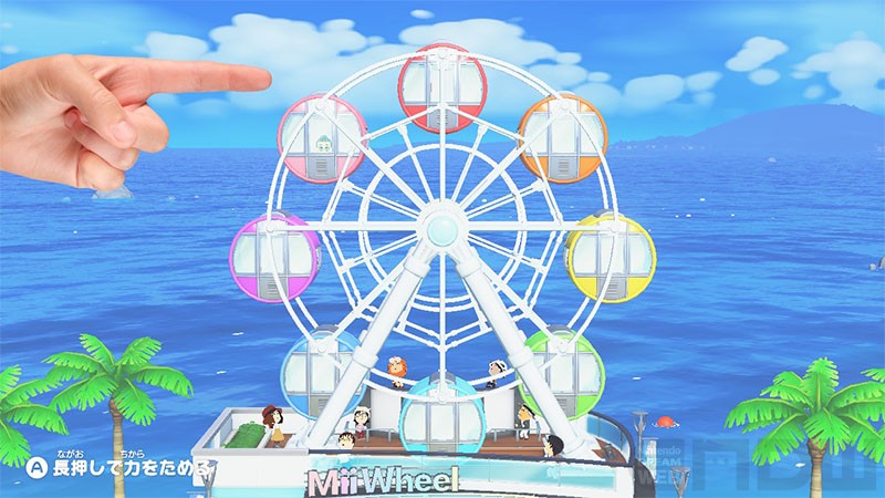 島に新しく「観覧車」が登場。ミニゲームの「観覧車つつき」で遊んだり、新しいメンバーが島になじんでいくようすと眺めたりと、人数が増えたことで生活が一気に色づき始めました。どんどん人を増やした方が楽しそう!