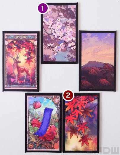 1枚引きの「菊に盃」の札の意味と合わせて読むと、自分へのご褒美や投資として長期的に出来る事を見つけると良さそうです。