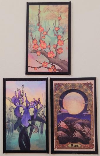 開運ポイントを更に深堀りしてみましょう。追加で2枚引いてみると「杜若(かきつばた)」「芒(すすき)に満月」が出ました。「杜若」は「足元を固める」「慎重に進む」という意味があります。